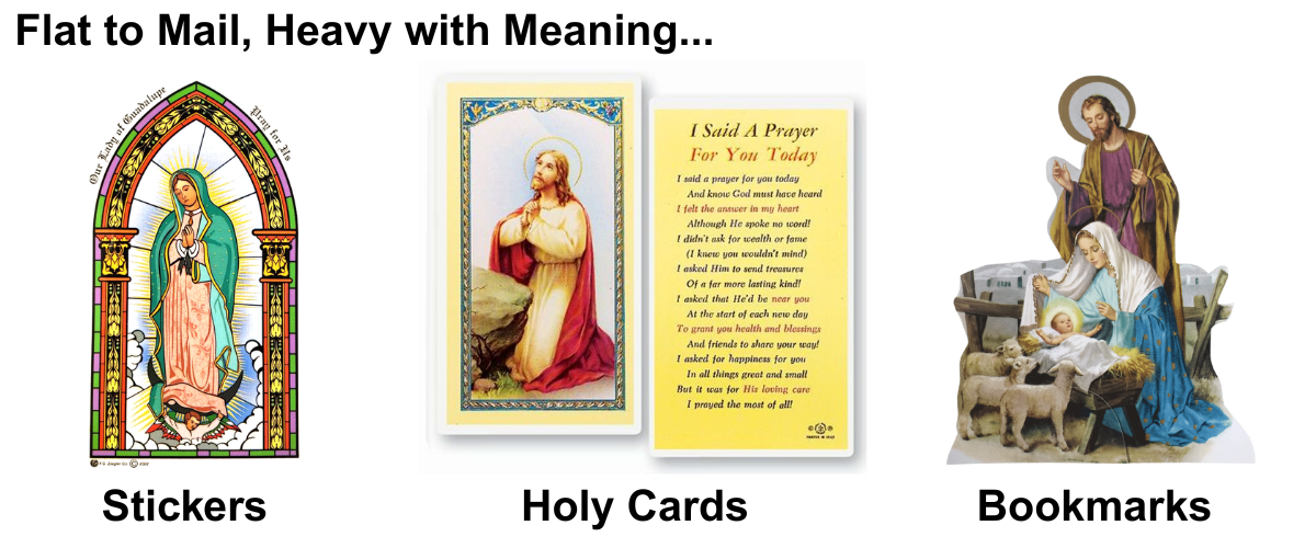 | Holy Card with Medal | Prayer on the front, saint medal sealed inside—lasting keepsake. | The metal bump makes the letter non-machinable. Add a non-machinable-surcharge stamp (or use a small bubble mailer). |