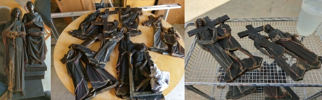 Through careful restoration work, the pieces were cleaned, repaired, and renewed so they could once again serve the parish.